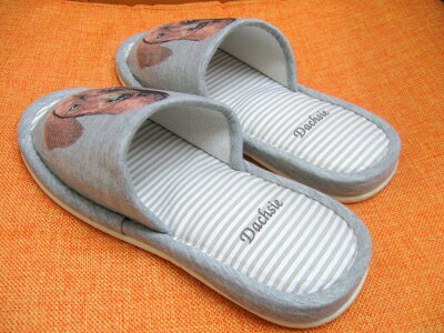 ダックスフンド ダックスフント・スムース茶(H) スリッパ 洗える 【大人用22〜26cm】男女兼用 グレー ストライプ 丸洗い ウォッシャブル ルームシューズ かわいい おしゃれ 来客用 すりっぱ 室内履き 新生活 オフ会
