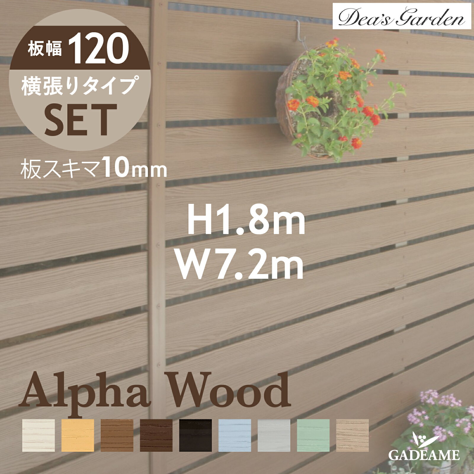 送料無料※アルファウッド横張りのセット商品。Dea's Garden ディーズガーデン アルファウッド横張りタイプセット W7200×H1800 板幅120 スキマ10mm 木目調樹脂フェンスおしゃれな目隠しフェンス Alpha Wood 【ディーズガーデン正規特約店】