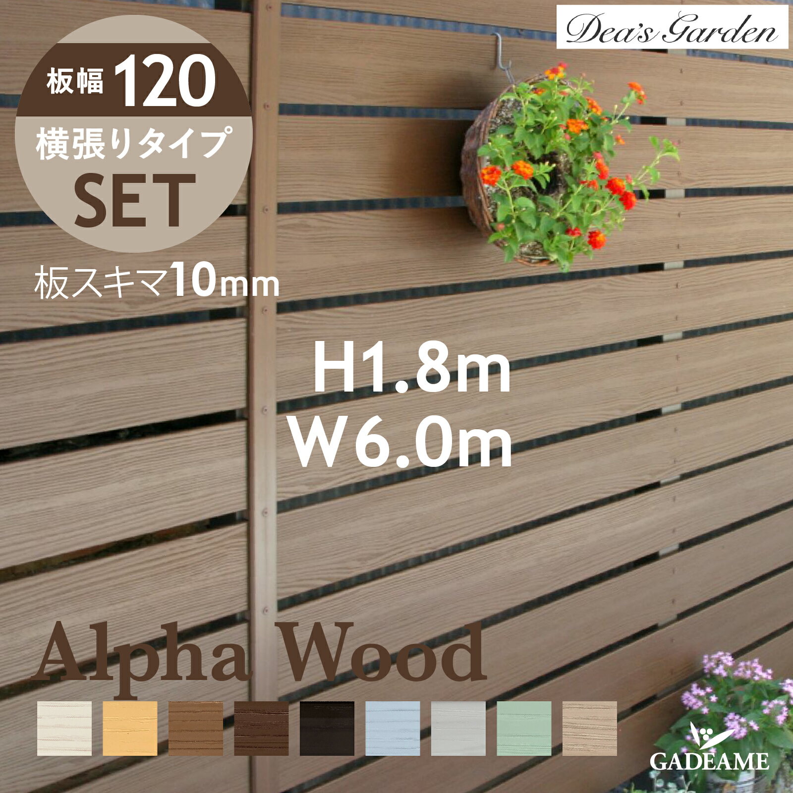 送料無料※アルファウッド横張りのセット商品。Dea's Garden ディーズガーデン アルファウッド横張りタイプセット W60000×H1800 板幅120 スキマ10mm 木目調樹脂フェンスおしゃれな目隠しフェンス Alpha Wood 【ディーズガーデン正規特約店】