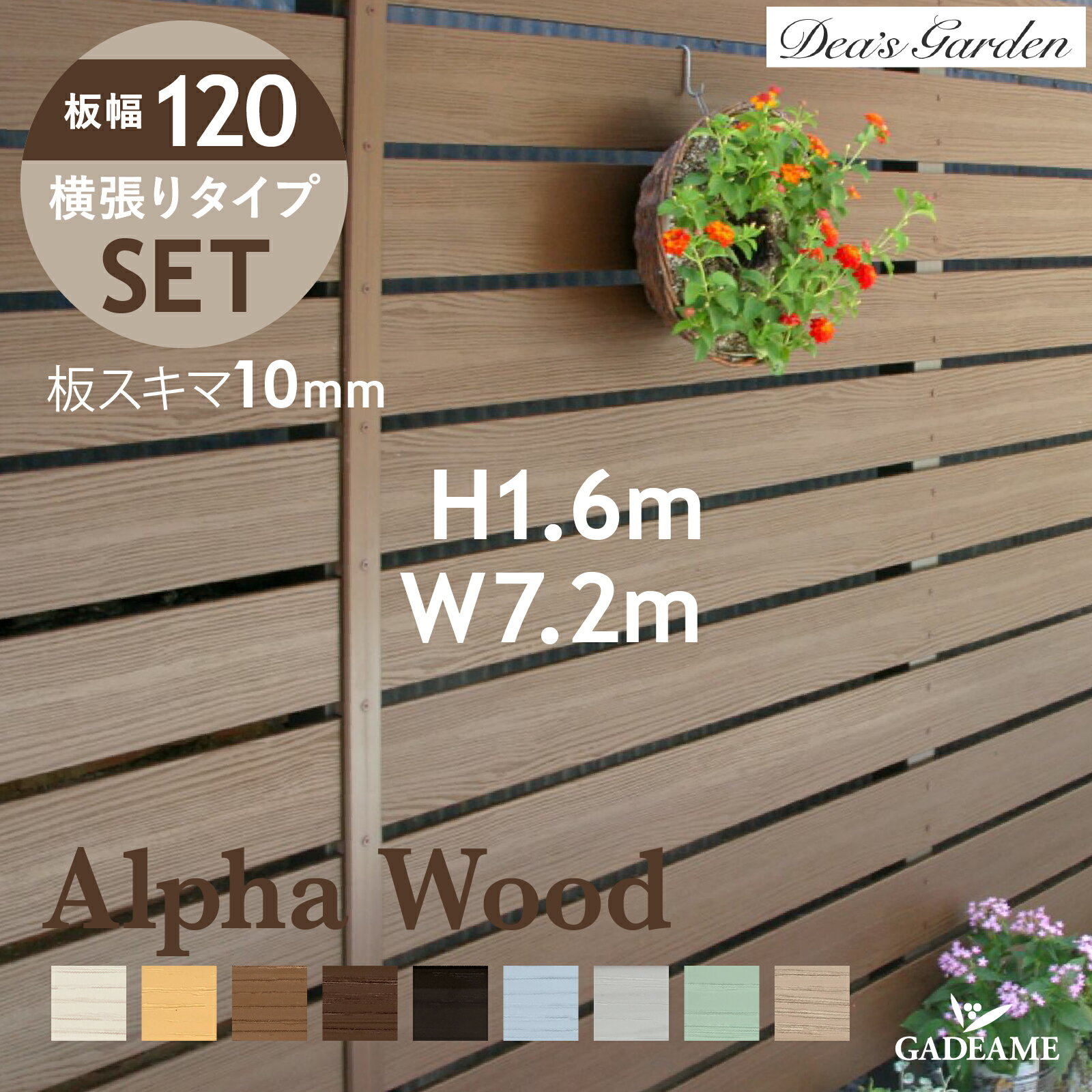 送料無料※アルファウッド横張りのセット商品。Dea's Garden ディーズガーデン アルファウッド横張りタイプセット W7200×H1600 板幅120 スキマ10mm 木目調樹脂フェンスおしゃれな目隠しフェンス Alpha Wood 【ディーズガーデン正規特約店】