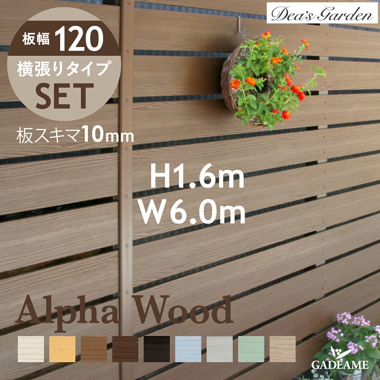 送料無料※アルファウッド横張りのセット商品。Dea's Garden ディーズガーデン アルファウッド横張りタイプセット W6000×H1600 板幅120 スキマ10mm 木目調樹脂フェンスおしゃれな目隠しフェンス Alpha Wood 【ディーズガーデン正規特約店】