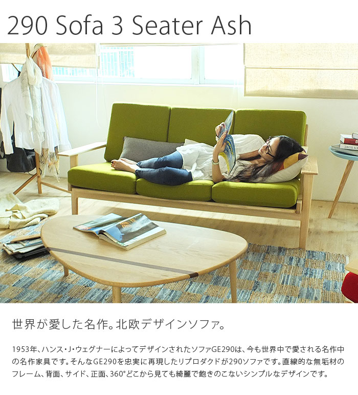 290ソファ 3人掛け ホワイトアッシュ ファブリックタイプ 北欧デザイン(代引不可)【送料無料】
