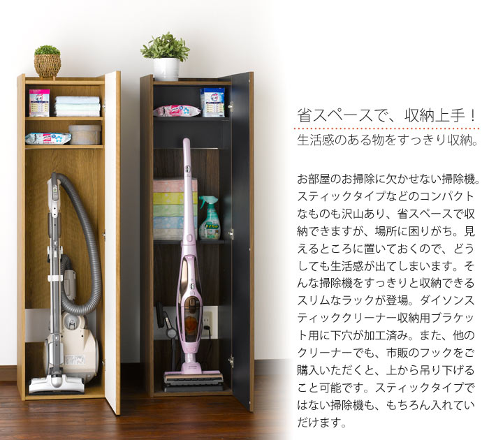 クリーナーラックは、スティックタイプの掃除機や、紙パック式の掃除機の収納が 可能。