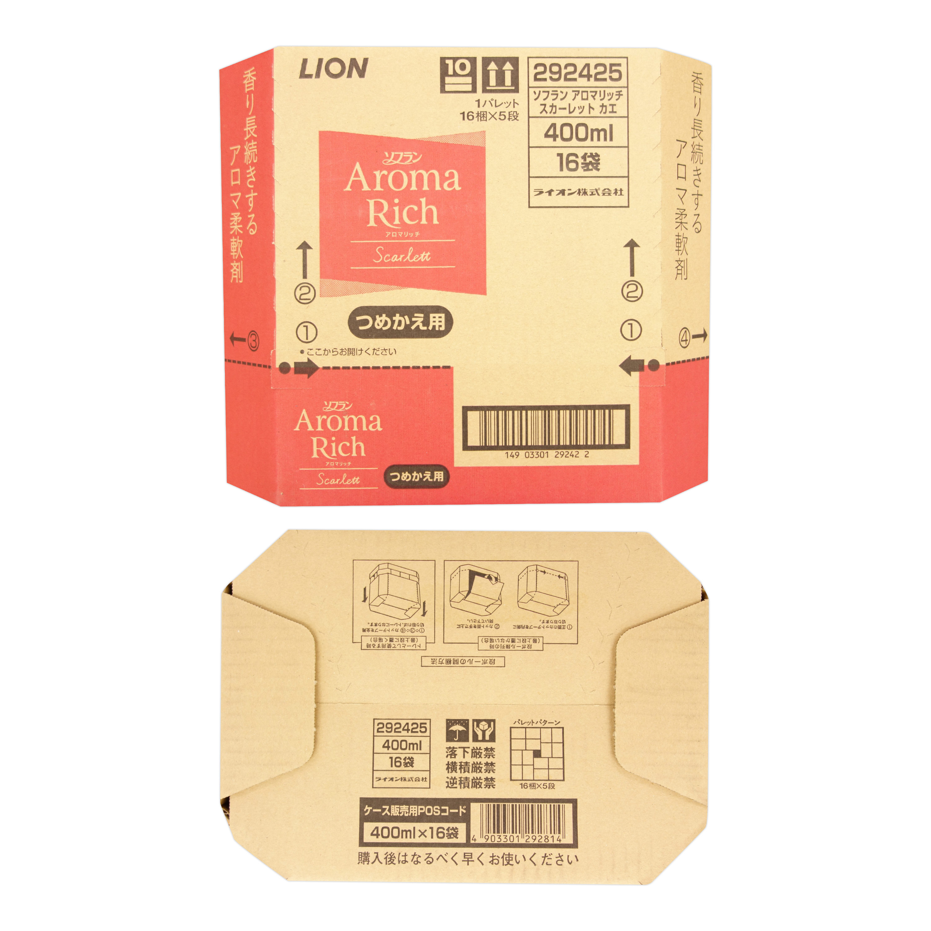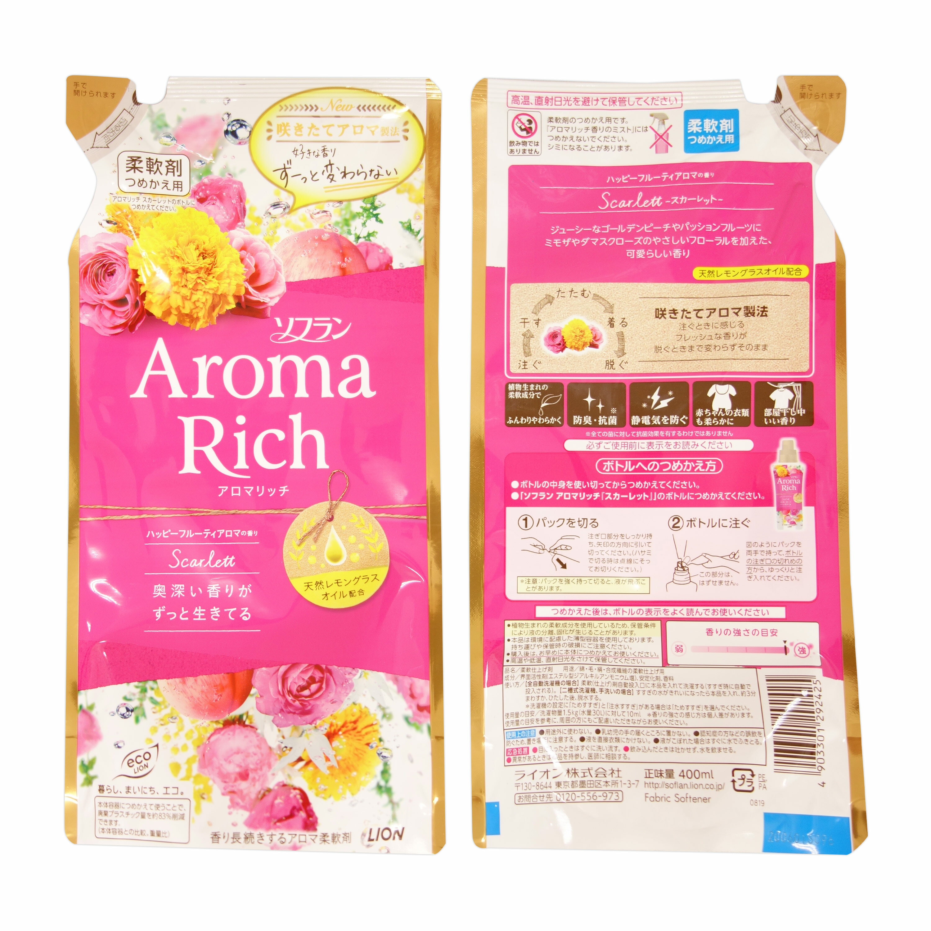 品名: ソフラン アロマリッチ スカーレット つめかえ用 製造: ライオン 正味量: 400ml 入数: 16パック ケース番号: 292425 JANコード: 4903301292425 ※メーカー都合により デザイン等が予告なく変更になることがあります。