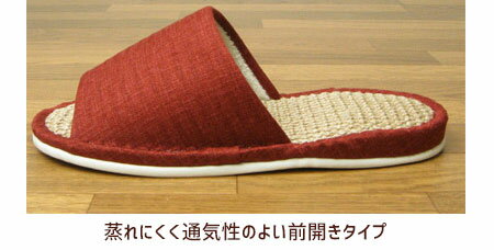 程よい凹凸感に織り上げた 麻のザラザラ シャリシャリとした感触が 足裏に心地いい刺激を与えてくれる 前開きタイプの麻中スリッパ 前開きなので通気性がよく、足が蒸れません。