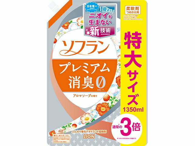 『送料無料』「大容量」ソフラン プレミアム消臭 アロマソープの香り 柔軟剤 詰め替え 特大1350ml [代引選択不可]
