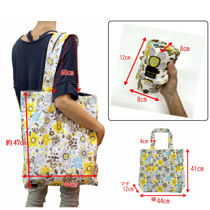 商品情報ブランドWEST POINT型番MIL-811製品名エコバッグ【公式オンラインストア限定販売】サイズ本体サイズ:縦41cm×横44cm×マチ12cm取っ手:60cm 幅4cm折りたたみ時:8cm×8cm×12cm(スナップファスナー留め) 重量180g素材表:綿 100%裏:ナイロン 100%(はっ水加工)※商品により柄、模様の出方が異なる為、画像と異なる場合がございます。