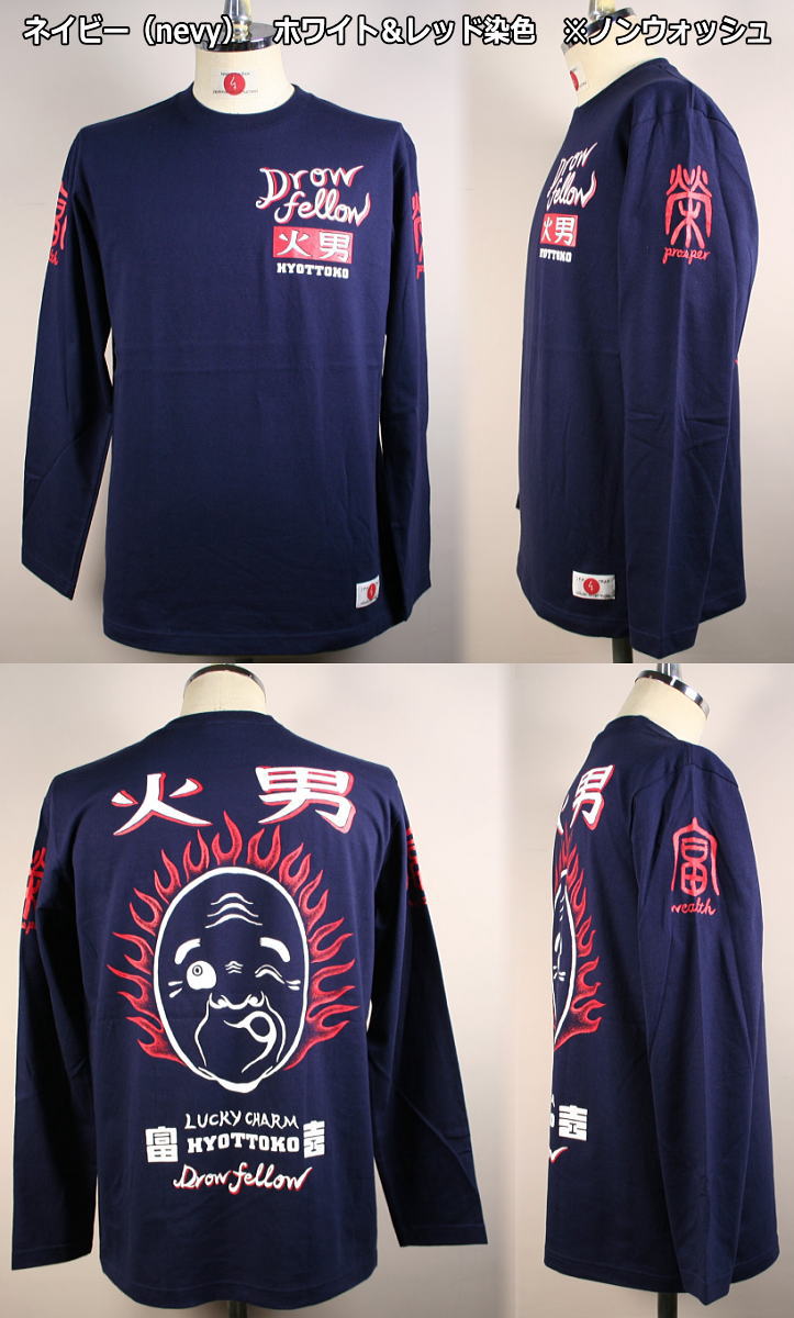 【20%OFFクーポンアリマス】和柄 ロンT「ひょっとこ 火男」最大3L 福 アメカジ 長袖 tシャツ 京都 送料無料 メンズ レディース 大きいサイズ 生地 服 手染 京友禅