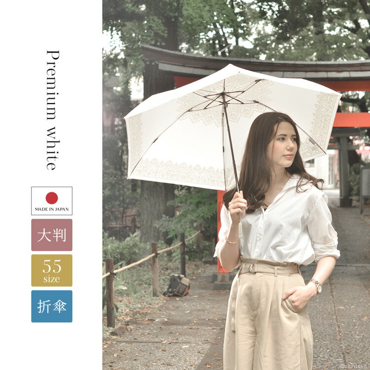 日傘 折りたたみ 折り畳み 母の日 大きいサイズ 大判 ブランド プレミアム ホワイト レース 柄 紫外線 カット 軽量 軽い UV カット ほぼ 100% 人気 晴雨兼用 日本製 遮熱 涼しい 大きい サイズ 誕生日 プレゼント ギフト お母さん お義母さん 黒 ブラック ゴールド ブルー 青