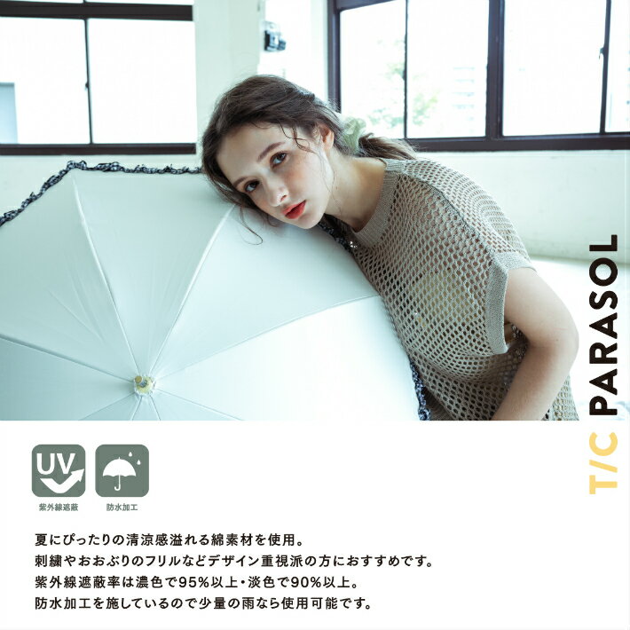 【レディース日傘/晴雨兼用】日傘 長傘 軽量 晴雨兼用 軽い 超軽量 晴雨兼用傘 UVカット 100 遮光 遮熱効果 おしゃれ 一級遮光 レース フリル 刺繍 紫外線対策 かわいい グラスファイバー 50cm a.s.s.a/アセント