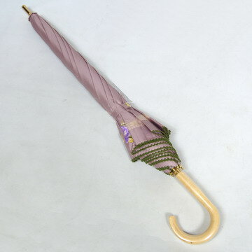 バッグ・小物・ブランド雑貨 傘 日傘 【特別価格 送料無料!】レディース日傘長: 薔薇刺繍&オーガンジー切継&縁ピコレース刺繍がおしゃれな一級遮光遮熱晴雨兼用日傘長☆