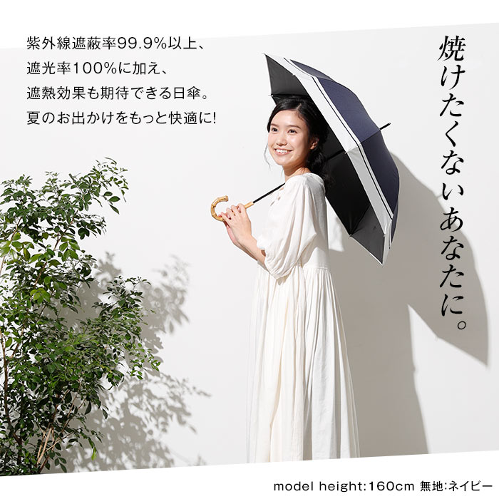 日傘 完全遮光 遮光率 100% UVカット 99.9% 紫外線対策 UV対策 晴雨兼用 レディース ボーダー ストライプ ドット シンプル お洒落 かわいい 可愛い 長傘 母の日「お散歩に、お買い物に、通勤に。