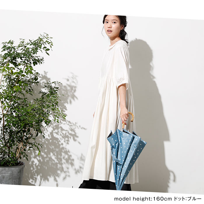 バンブーハンドルがオシャレで可愛い」【検索用カラー】無地:ネイビー/無地:ブラック/ドット:ブルー/ドット:ブラック/幾何学:ネイビー/幾何学:イエロー※このページで販売しているのは長傘タイプです。