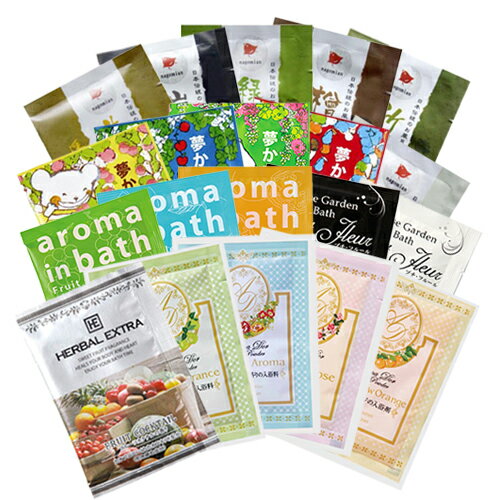 (ホテルアメニティ)(入浴剤 福袋)(パウチ)業務用 [アロマドール バスパウダー,アロマインバス,和み庵,パルパルポー,ハーバルエクストラ,プチ・フルール,リッチバスパウダー]おまかせアソート入浴剤 × 50個セット - 1包1回分お試しサイズ ※種類は選択できません。