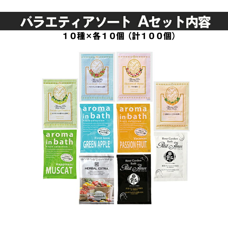 【ホテルアメニティ】【パウチ】業務用 バラエティーアソート入浴剤 福袋×100個 (Aセット) - 10種×各10個のボリュームセット・プチギフト・プレゼント・景品・お買い得・詰め合わせ・まとめ買い【smtb-s】