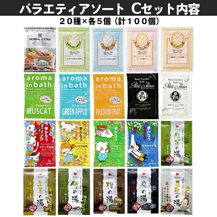 【あす楽発送 ポスト投函!】【送料無料】【ホテルアメニティ】【パウチ】業務用 バラエティーアソート入浴剤 福袋×100個 (Cセット) - 20種×各5個のボリュームセット・プチギフト・プレゼント・景品・お買い得・詰め合わせ・まとめ買い【ネコポス】【smtb-s】