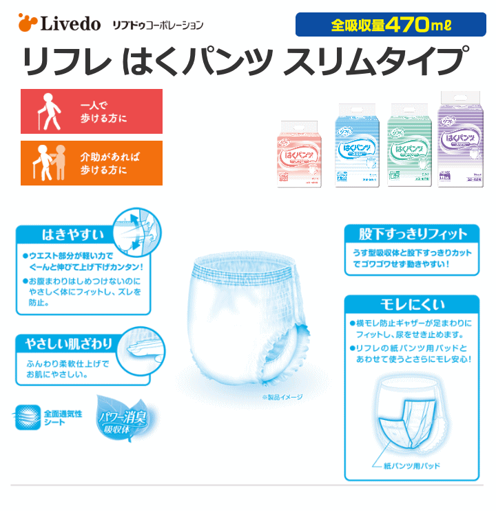 リブドゥ リフレ はくパンツ スリムタイプ Lサイズ 袋:18枚入り 介護用品 大人用おむつ 介護 おむつ オムツ 介護パンツ 介護おむつ 紙おむつ 大人用 紙パンツ 紙オムツ 失禁用品 旅行 トラベル 高齢者 シニア 老人 母の日
