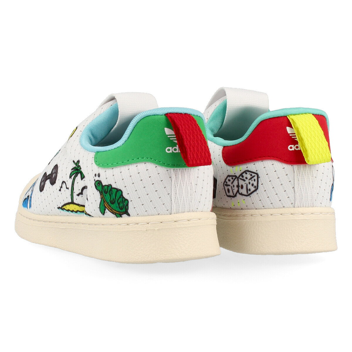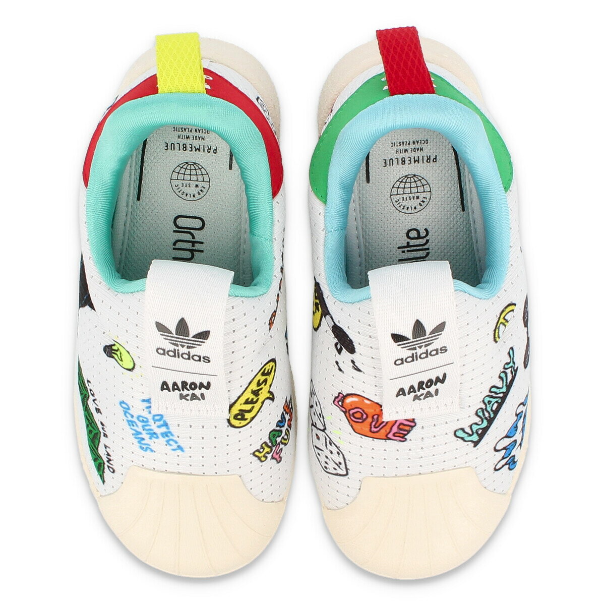 商品についてサーファーのアーロン・カイによるアートをストレッチメッシュアッパーに総柄であしらったベビー向けシューズ。