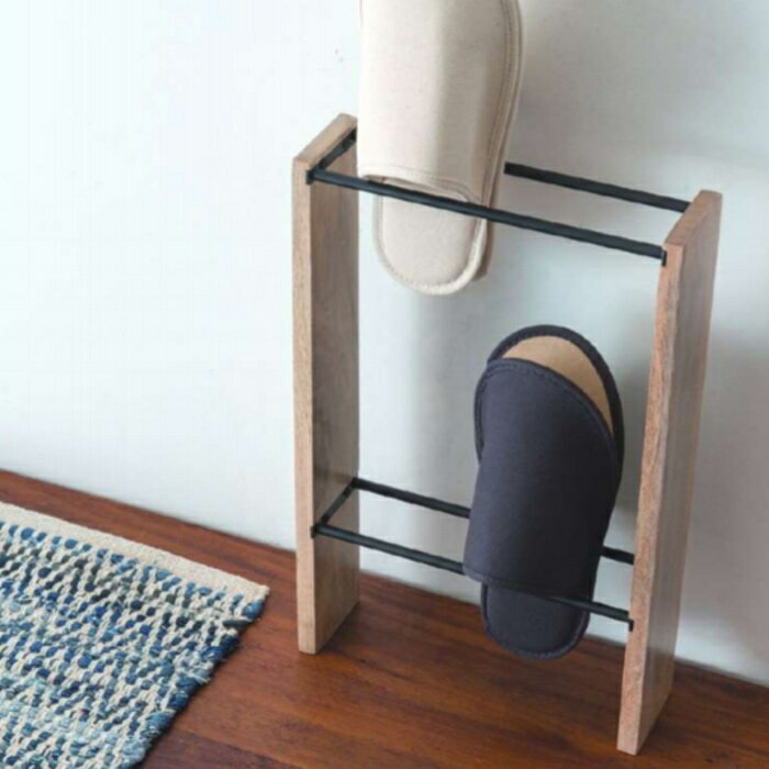 スリッパラックの特徴 サイズ:W28×D9×H43cm ●最大スリッパ4足収納可 ●脚裏キズ防止シール付 材質:アイアン・マンゴーウッド 原産国:インド ナカサのお洒落な玄関収納 あとで買うより今まとめ買いなら、何個買っても送料は1つ分で超お得。