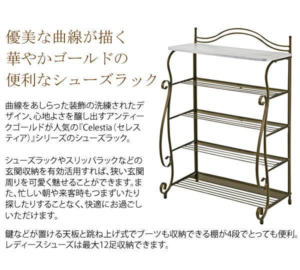 ■サイズ 幅62×奥行き36×高さ92.5cm ■材質 木目柄塩化ビニール貼りMDF、スチール(粉体塗装) ■耐荷重 天板:5kg、棚板:3kg ■備考 組立式、アジャスター付き 玄関収納カテゴリはこちら 【キーワード】 エレガント アイアン シューズラック おしゃれ ロートアイアン 可愛い アンティーク スリッパラック 省スペース 5段 4段 北欧 安い スリム 12足 玄関収納 靴収納 激安 靴箱 下駄箱 格安 かわいい 玄関ラック