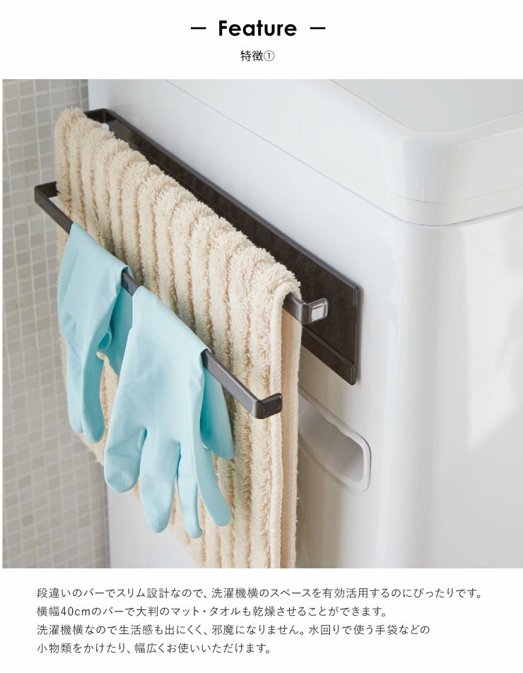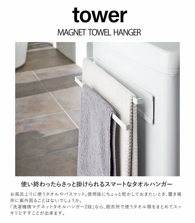 【 洗濯機横マグネットタオルハンガー 2段 タワー 】 tower タオル掛け 乾燥 部屋干し カビ 予防 タオルスタンド タオルラック バスタオル掛け バスタオル 室内干し シンプル おしゃれ 省スペース 2956 2957 ホワイト ブラック 白 黒 モノトーン 山崎実業 YAMAZAKI