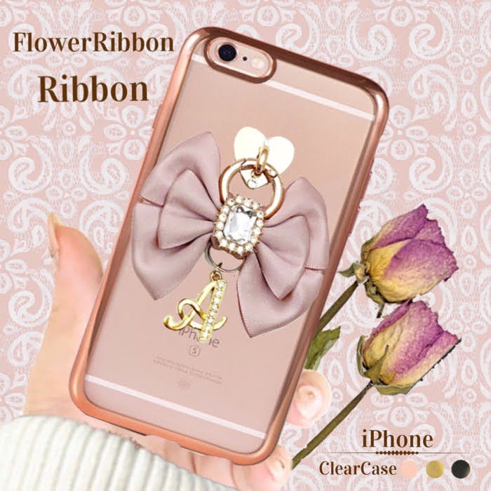 フラワーリボン イニシャル iPhone クリアケース iPhoneケース iphone12 Pro ProMax X Xs XR iphone11 iphone8 Plus iphoneSE2 ケース 韓国 シンプル おしゃれ かわいい 人気 リング スマホケース リボン ソフト 耐衝撃【送料無料】