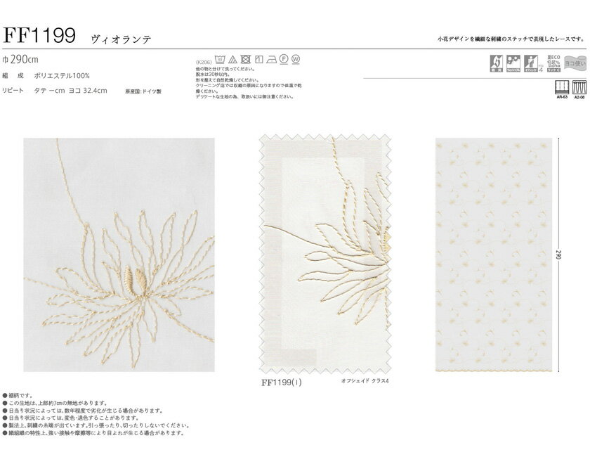 川島織物セルコン カーテン filo フィーロ レース▼スタンダード縫製 裾刺繍 2倍ヒダ 片開き▼ Transparent ゼミッタ FF1200【幅201〜250×高さ201〜220cm】オフウェイドクラス4 夏エコランクC