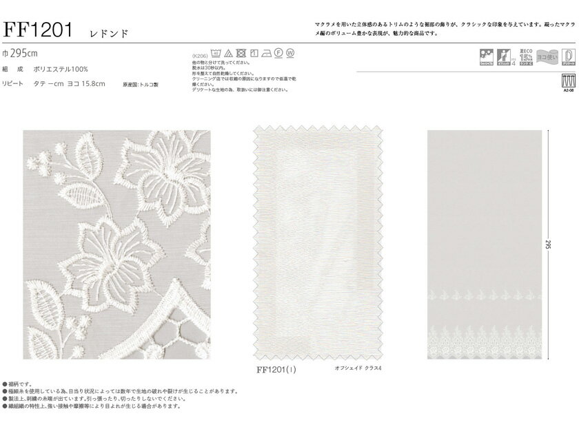 川島織物セルコン カーテン filo フィーロ レース▼ スタンダード縫製 裾刺繍 フラット 片開き▼ Transparent レドンド FF1201【幅101〜200×高さ141〜160cm】ウォッシャブル オフウェイドクラス4 夏エコランクC