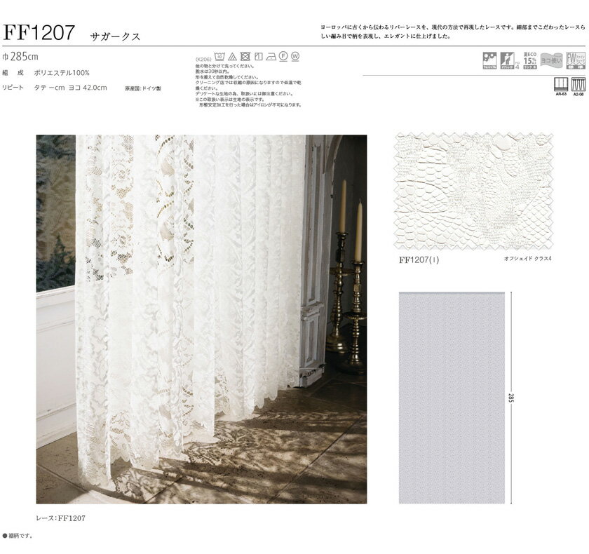 川島織物セルコン カーテン filo フィーロ レース▼ ファインウェーブ縫製 裾刺繍 2倍ヒダ 両開き▼ Transparent サガークス FF1207【幅51〜100×高さ221〜240cm】ウォッシャブル オフウェイドクラス4 夏エコランクB